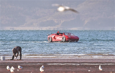 ■轿车造型的快艇在冬日的前海“驰骋”。 赵健鹏 摄