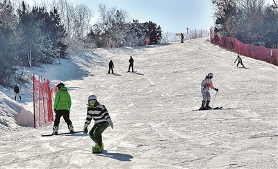 ■冰雪玩家在藏马山滑雪场驭雪而行。 王 雷 摄